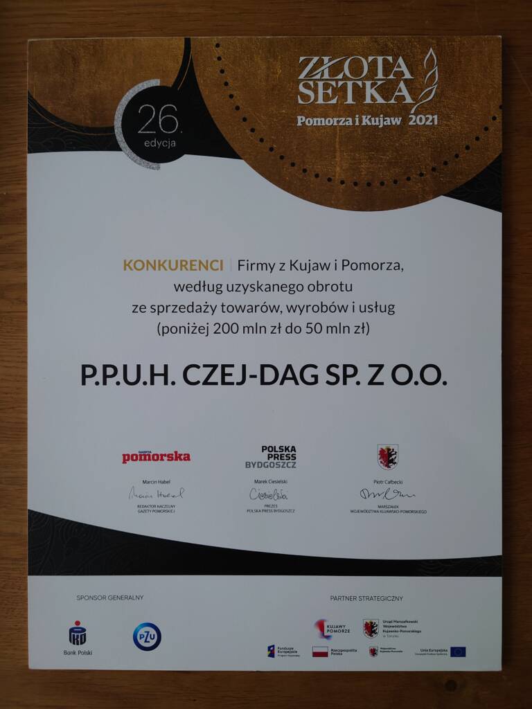 CZEJ-DAG już wielokrotnie znalazł się w Złotej Setce Pomorza i Kujaw w kategori KONKURENCI.